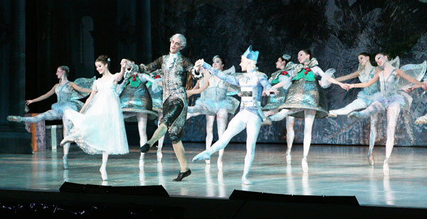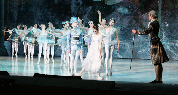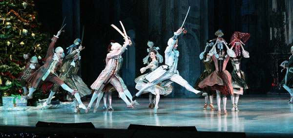 В театральной программке читаем о втором действии: «Проверяя искренность и прочность их чувств, Дроссельмейер открывает перед Машей и Принцем мир сладостных искушений: испанские тореадоры поражают Машу красотой и смелостью, восточные красавицы обволакивают Принца томной негой, китайские танцовщицы пытаются научить Машу своим замысловатым па, русские петрушки вовлекают Принца в свой залихватский, разудалый танец, а французский кавалер и очаровательная мадемуазель кружат головы». К сожалению, драматургически эти идеи совершенно не прочитываются.