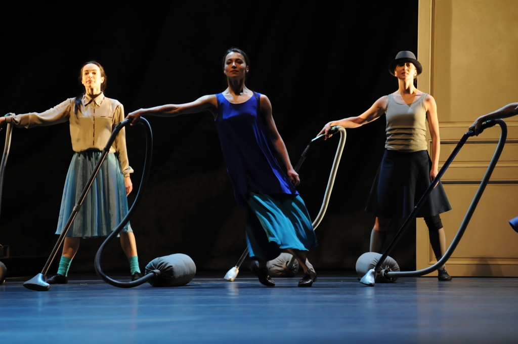В «Квартире» один из эпизодов так и назван — «Эмбрионы». Помещен он сразу после эпизода с победным степом самодостаточных женщин с фаллическими пылесосами. В «Спящей» вместо уборщиц с пылесосами будут феи со швабрами или жутковатые старушки с ридикюлями, в «Жизели» — все те же безумные менады, а еще деревенские девушки со страусиными яйцами, в «Кармен» — пляски в стиле фламенко, а в «Лебедином», разумеется, — лебедята-инопланетяне.