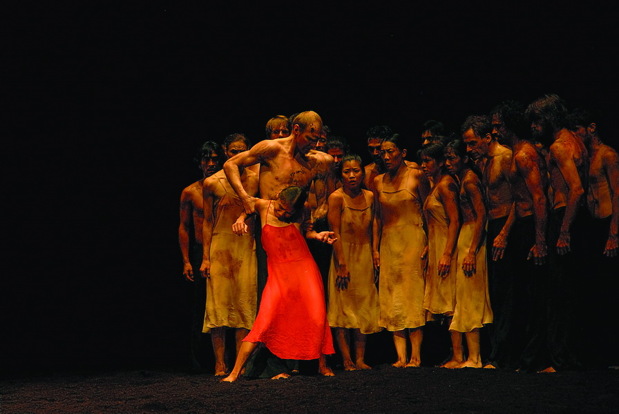 Магнит, к которому притягивается действо, сочиненное Пиной Бауш, — непонятная красная тряпка. Сначала это просто яркое пятно, элегантный центр лаконичного дизайна сцены: красное покрывало, расстеленное прямо на земле (вся сцена густо усыпана всамделишным торфом). На нем спит молодая женщина. Но постепенно, повинуясь нарастающим тревожным музыкальным ритмам, наливающимся буйной первобытной силой, пространство вокруг пятна-тряпки будет наэлектризовываться. Собственно,