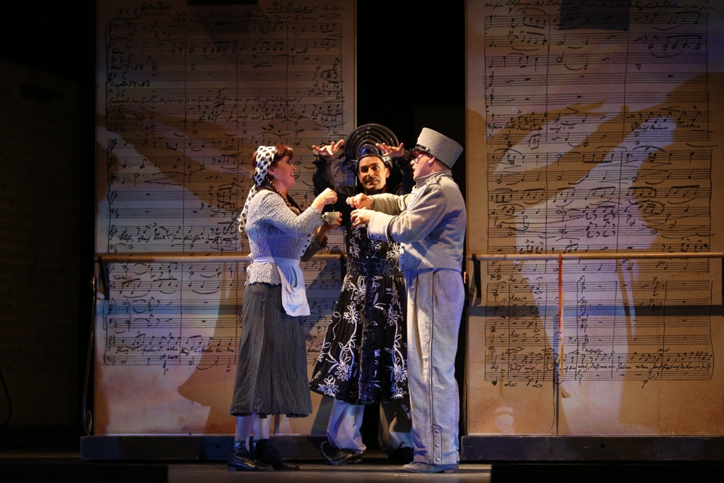 В целом это ощущение подтвердилось — лёгкость и головокружительная виртуозность присутствуют в нём изрядно, как в музыкальном исполнении, так и в сценическом действии. Гениальная находка Петрова с множеством ширм, «бегающих» по сцене и каждый раз формирующих сценическое пространство так, как нужно постановщику, работает превосходно — спектакль динамичный, даже искромётный.