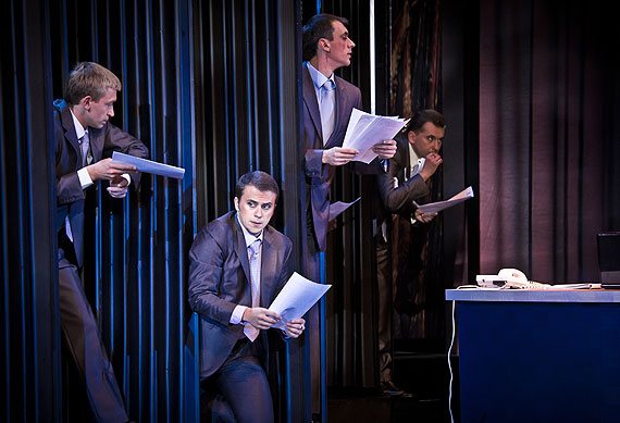 Чёрные панели, офисные костюмы, секретарша, стучащая на ноутбуке... Всё это видено-перевидено в последние годы миллион раз и не вызывает ни малейшего энтузиазма. Полное впечатление, что у постановщиков спектакля вообще нет никаких новых идей и единственное, на что они способны, — это одеть по текущей европейской, а теперь и российской моде, героев оперы прошлого (по сюжету — век 18-й, по написанию — 19-й) в современные костюмы.