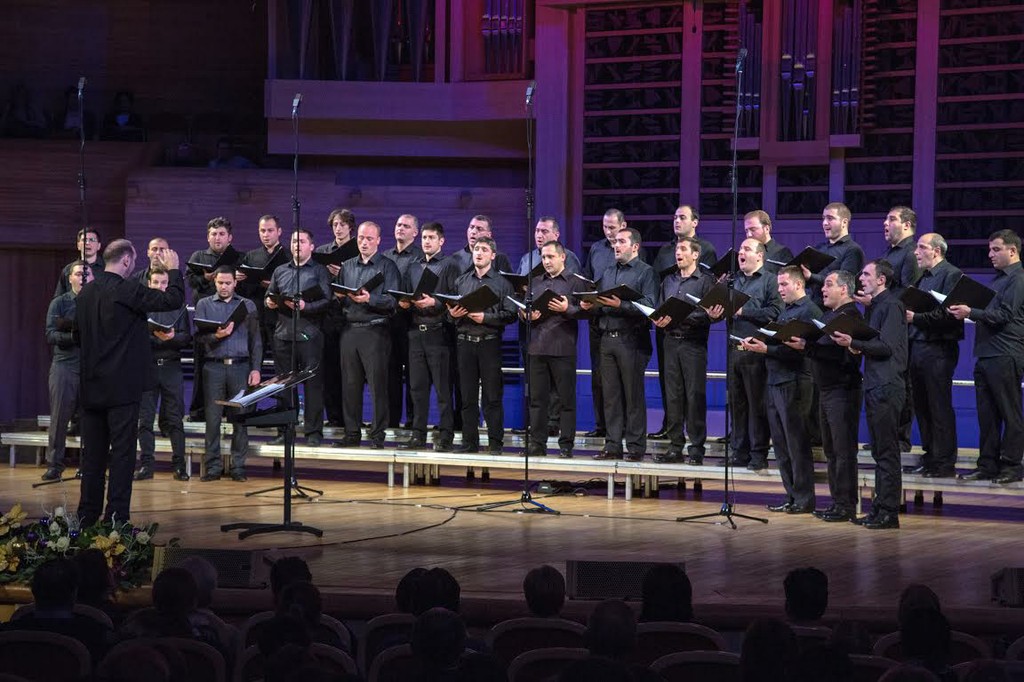 Полный состав хора — 60 певцов, на сцене Светлановского зала насчитала максимально 36. Удивило, что типично грузинские лица в меньшинстве. Молодые, от 30 до 40 лет интеллигентного среднеевропейского вида мужчины, далеко не жгучие брюнеты. Но что они творили своим пением! Поверю, если у кого-то из публики от такого звучания прошли или сильно ослабели хронические болячки.