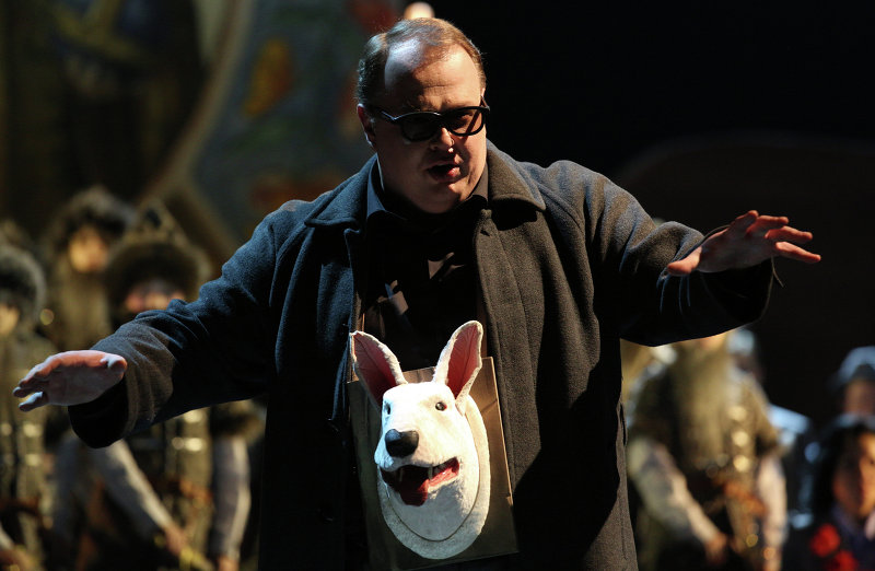 Сильная выходная ария Григория Грязного в исполнении Александра Кузнецова прозвучала убедительно. Однако включение в действие осветителя, который ходил здесь же по сцене с огромным прожектором и светил Грязному в лицо, навевало на мысль, что мы либо присутствуем на репетиции спектакля, либо участвуем в какой-то неведомой нам игре.