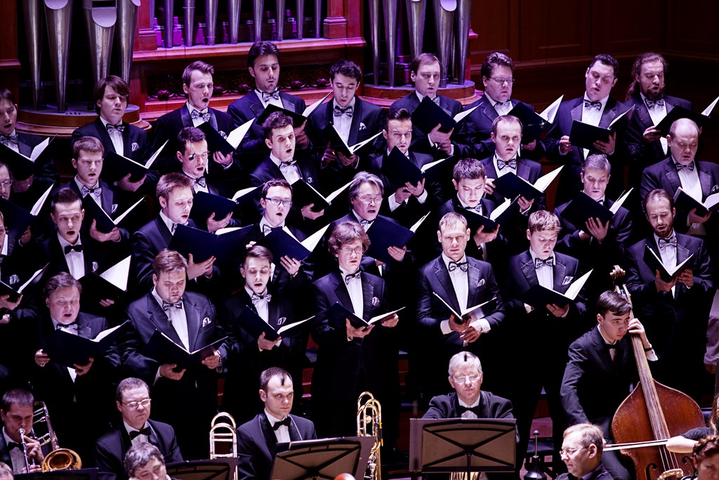 а ее четко выдержанная речитативно-мелодекламационная линия при неожиданно большой плотности оркестровой ткани потребовала голосов, гораздо более сильных и драматических, чем представленные на премьере, особенно — в мистических сценах с эклектичным наслоением достаточно мощного звучания хора и колоколов. Хоровую поддержку этому исполнению оказала Государственная хоровая капелла России имени Юрлова под управлением Геннадия Дмитряка.