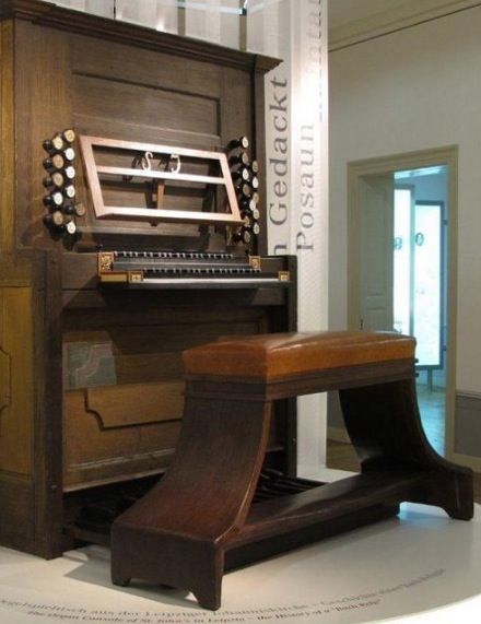 В следующем зале стоит маленький скромный органный шпильтыш, за которым Бах играл в 1743 году, и при нём очень простая скамья. Прекрасные музейные вещи, на которые взираешь с трепетом и ждёшь снисхождения благодати: о, если остался на них после множества жизненных перепетий и реставраций хоть малый след его прикосновения, то ты почувствуешь его… Здесь же подвешены металлические трубы, имитирующие органные. У каждой своё значение: в них вмонтированы записи органных произведений Баха, услышать которые можно, благоговейно обняв ладонями трубу и приникнув ухом к крошечным отверстиям в ней. Дырочки сделаны на разных уровнях, в том числе и с учётом детского роста.