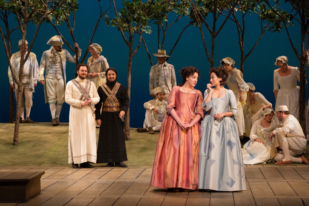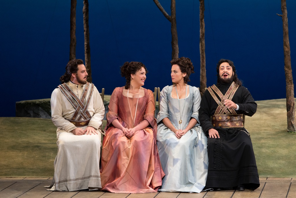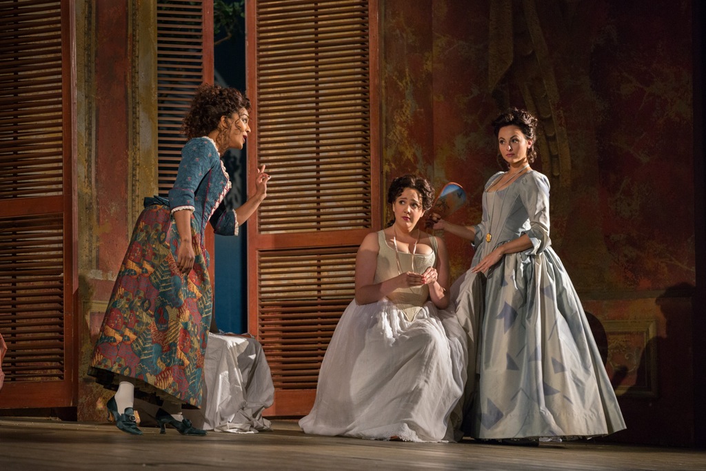 Ее певческий состав поистине великолепен. Трогательно наивные Фьордилиджи (Сюзанна Филипс) и Дорабелла (Изабель Леонард), не сразу, а комически непоследовательно и драматически бесповоротно встающие на «скользкий путь» перекрестной измены своим женихам, являют удивительную органичность слияния красивых, тембрально богатых и выразительных голосов. Их звуковедение академически безупречно и в то же время драматически полновесно: