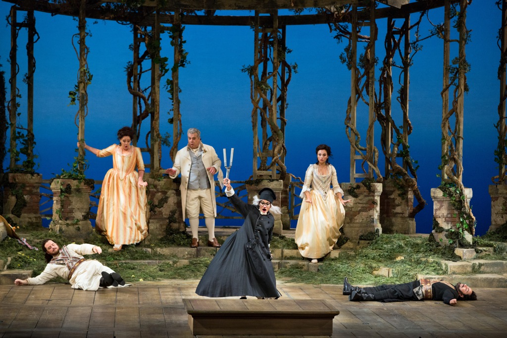 Как мы помним, первым был «Фальстаф» Верди. Постановка «Così fan tutte» в режиссуре Лесли Кёниг и сценографии и костюмах Майкла Йергана изумительна по красоте и остроумию, «монументальной легкости» и элегантной действенности мизансцен. Любопытно, что ее премьера, состоявшаяся под управлением Джеймса Ливайна 8 февраля 1996 года, выдерживает уже пятое возобновление (предыдущие приходятся на сезоны 1996/1997, 2001/2002, 2005/2006 и 2010/2011).