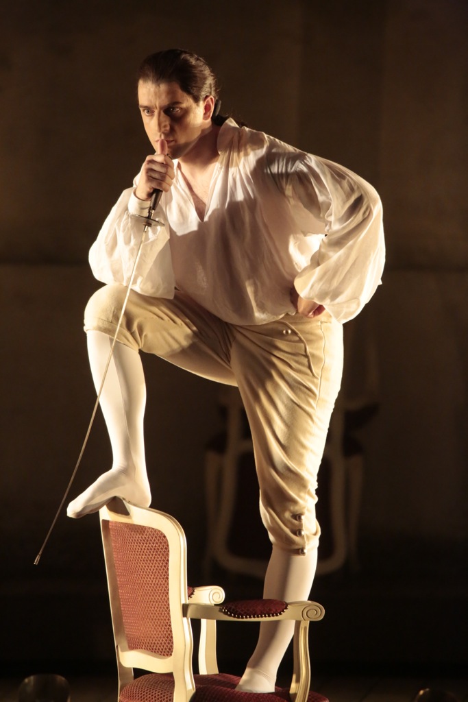 в умении раскрепостить ещё совсем неопытных артистов, создать команду, для большинства из этих певцов данная премьера — первая крупная партия вообще или на сцене Большого театра. Незаметно было, что второму составу досталось меньше сценических репетиций, настолько ловко все бегают, падают, бьются на шпагах. Дружеская дуэль Гульельмо и Феррандо в начале оперы во время пения дуэта — комплимент мастеру боевых искусств Олегу Найдёнышеву, поставившему фехтование.