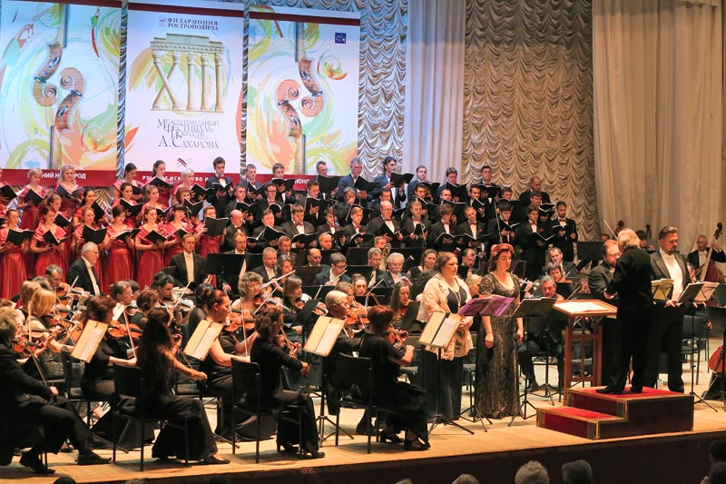 — Состав участников сложился далеко не сразу. Сначала Ольга Томина встретилась в Москве с директором Санкт-Петербургской хоровой капеллы. «Давно мы у вас не были», — говорит ей питерский коллега. «Приезжайте к нам на Сахаровский фестиваль», — сказала ему директор нижегородской филармонии. «С удовольствием», — говорит директор капеллы. Разъехались. Томина приехала довольная: все, говорит, договорились. Через какое-то время она звонит в Петербург, чтобы продолжить переговоры. За это время Чернушенко узнал от директора, для исполнения какого произведения их приглашают в Нижний Новгород. «Месса Ре мажор? — переспрашивает он у директора. — Нет!» Ведь для хора это очень трудное произведение, и чтобы его осилить, нужно много над ним работать. Вот если бы мы попросили исполнить те произведения, которые у капеллы есть в нынешнем репертуаре, то тогда они бы к нам приехали. После этого мы обратились к Геннадию Дмитряку. И он согласился. Потом, правда, позвонил и говорит: ну и работёнку вы нам задали.