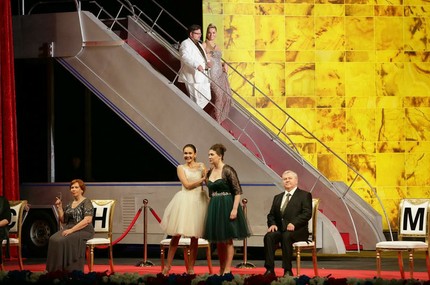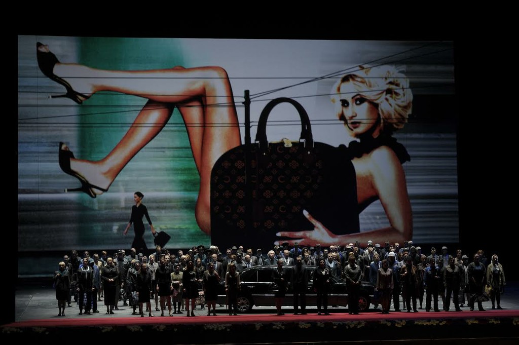 Тот случай, когда сюрпризов ждать не приходилось. Режиссер имеет узнаваемый почерк, известный зрителям обеих столиц по таким спектаклям, как «Борис Годунов» (Мариинский театр) и «Волшебная флейта» (Большой театр). Значит, будет бессмысленная и беспощадная смесь времен, кричащие костюмы, эклектичная сценография и, конечно, фирменный юмор, аккомпанементом к которому больше подходит не симфонический оркестр, а хруст попкорна.