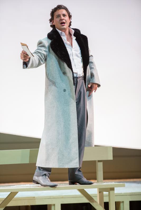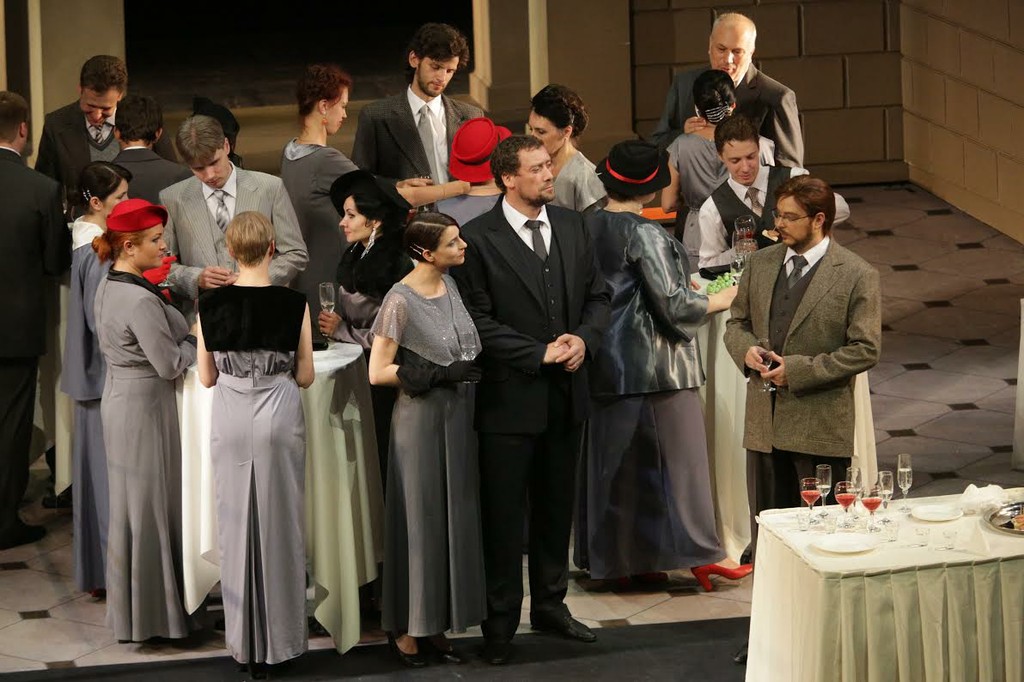 Солист Венской оперы эстонец Айн Ангер со своей генетической прибалтийской элегантностью оказался настолько неожиданным Греминым, что захватил зрительское внимание целиком. В знаменитой арии его герой с доверительной улыбкой, но очень определённо предупреждает Онегина — не суйся. Особенно в третьей части арии, когда забирает у него тарелку и бокал, мягко берёт за плечи и вежливо так заканчивает внушение. Потом возвращает тарелку и бокал. И хотя отличный голос Ангера кое-где всё-таки выдал интонационную фальшь, одно только присутствие этого великолепного Homo sapiens рядом c явным неудачником решило судьбу Онегина единым росчерком. Вот тут-то и стала бесконечно уместной финальная фраза Онегина «О жалкий жребий мой!»