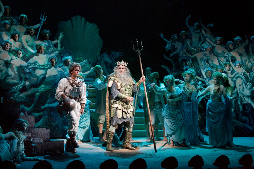 Зато матерый ветеран Пласидо Доминго, кажется, уже и не знающий, что бы ему такое еще спеть, ведь певческие возможности этого исполнителя уже давно пребывают в стадии неутешительной стагнации, в партии Нептуна вызывал лишь сочувственную улыбку. Но ветеран не сдается: пел он и на возобновлении постановки в прошедшем сезоне. Впрочем, пусть поет, ведь каждому появлению этого опуса в афише можно лишь только радоваться!