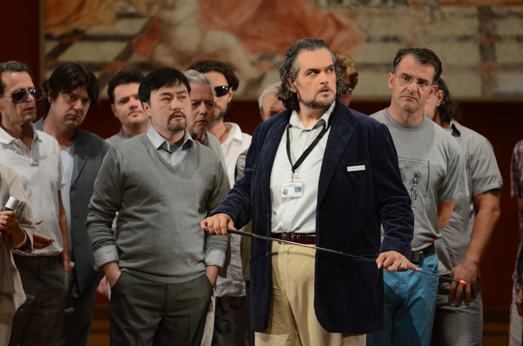Кроме того, в едином красно-буром цветовом потоке, которым окрашен весь спектакль, в нескончаемом передвижении полотен присутствуют утомляющее однообразие и умозрительность. Партитура, бурлящая страстями, контрастами, неудержимым порывом к свободе духа, совмещена с каким-то душным, даже эмоционально давящим видеорядом. Да и дирижёр Даниэле Гатти педалирует, правда, весьма эффектно, именно тёмный музыкальный колер.