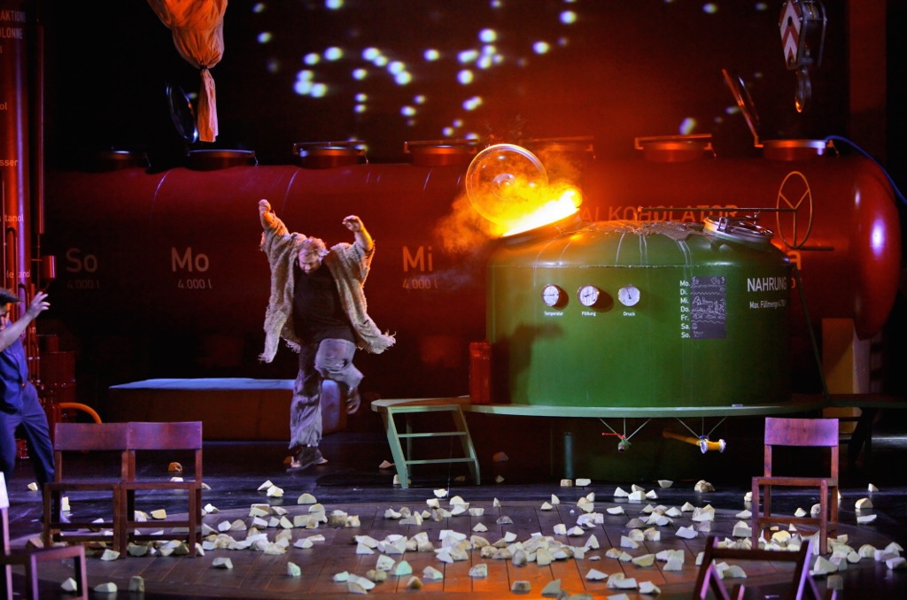 Так вот, через 20 минут после начала первого акта внезапно оборвался трос, держащий клетку с «Венериным гротом», который представляет собой вольер с симпатичными обезьянками и разными одноклеточными существами, постоянно совокупляющимися. В какой-то момент конструкция зависла без движения, а на сцену упал кусок троса.