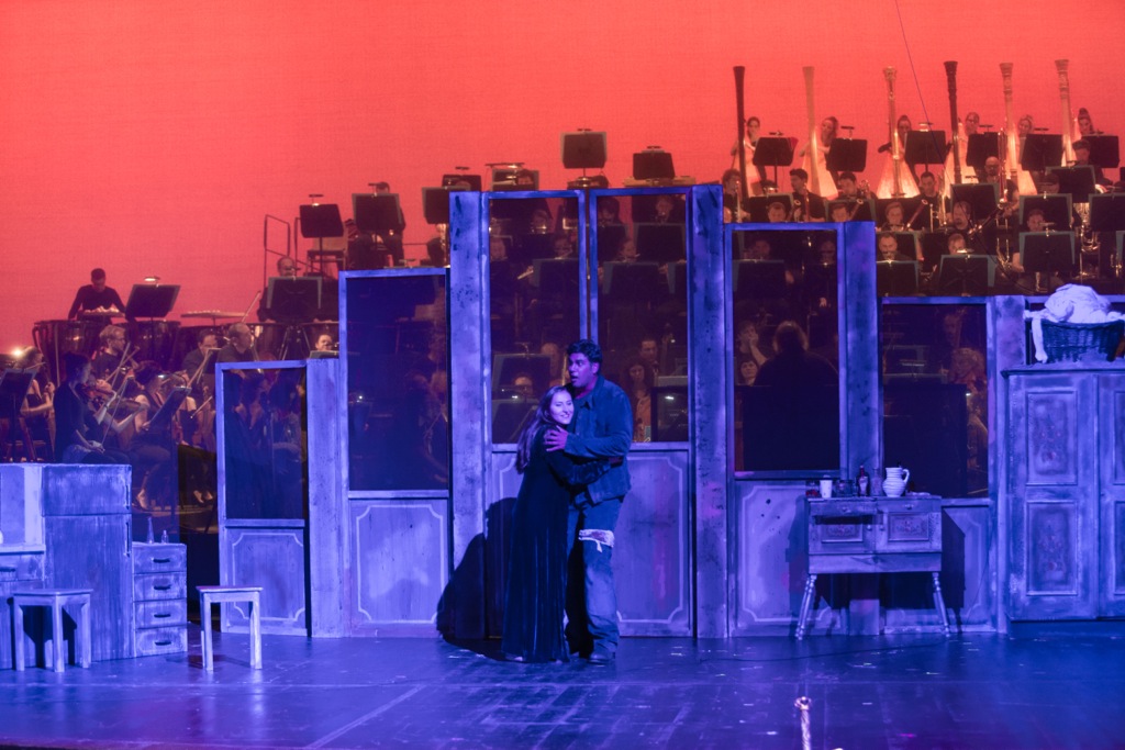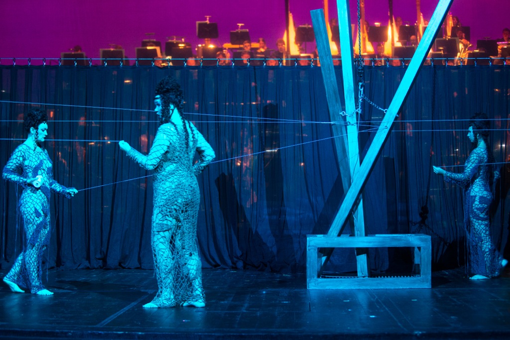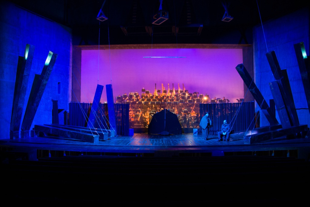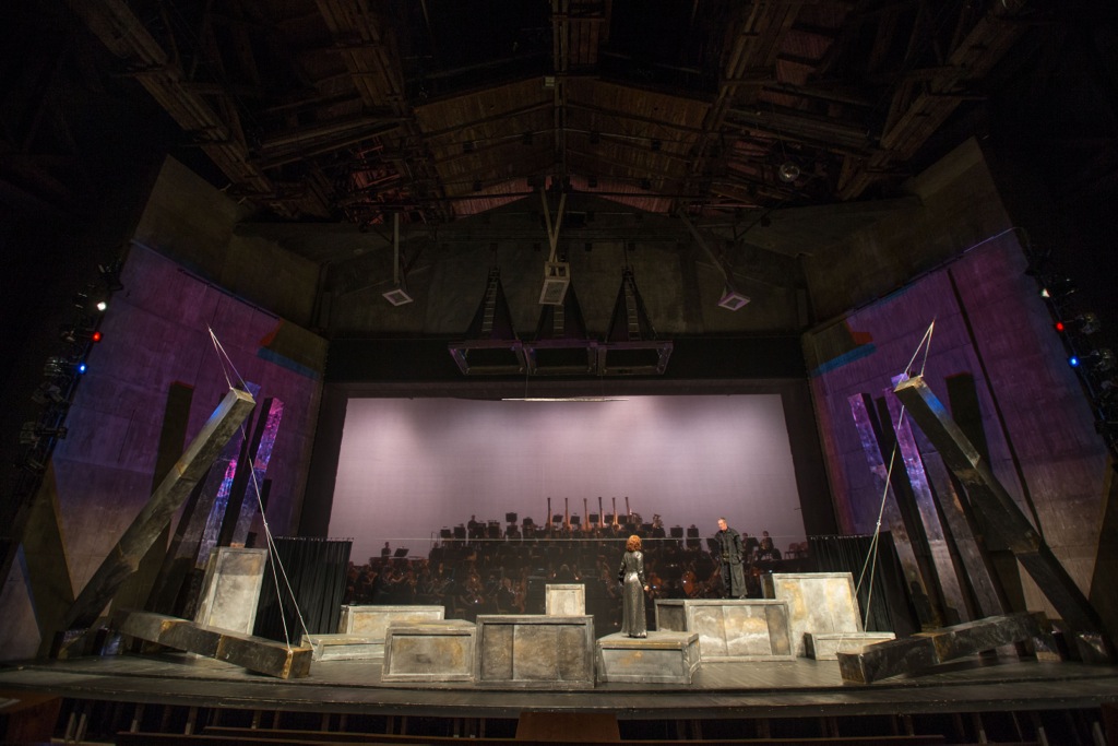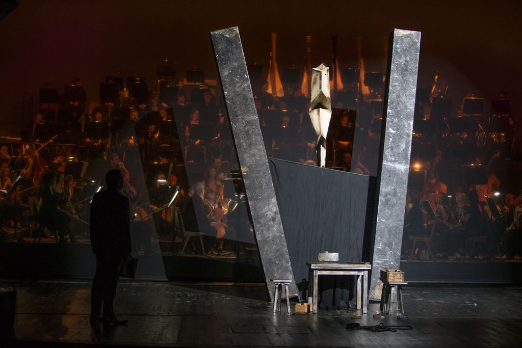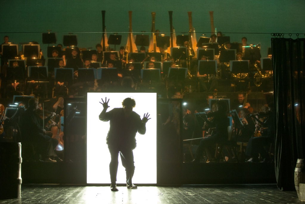 В отличие от Вагнера, спрятавшего оркестр, как нибелунгов, в «подземелье» бездонной оркестровой ямы Фестивального дома на Зелёном холме, Кун почти зеркально переносит оркестровый амфитеатр на сцену, и грандиозная стена звучащих инструментов (а вертикально расположенные группы духовых, особенно сияющая медь, выглядят фантастически красиво!) становится основной декорацией к разыгрываемому представлению.