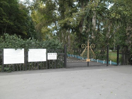 Подъехав к усадьбе, я увидел ворота главного входа, на которых красуются ноты мелодии романса С. В. Рахманинова «Сирень:
