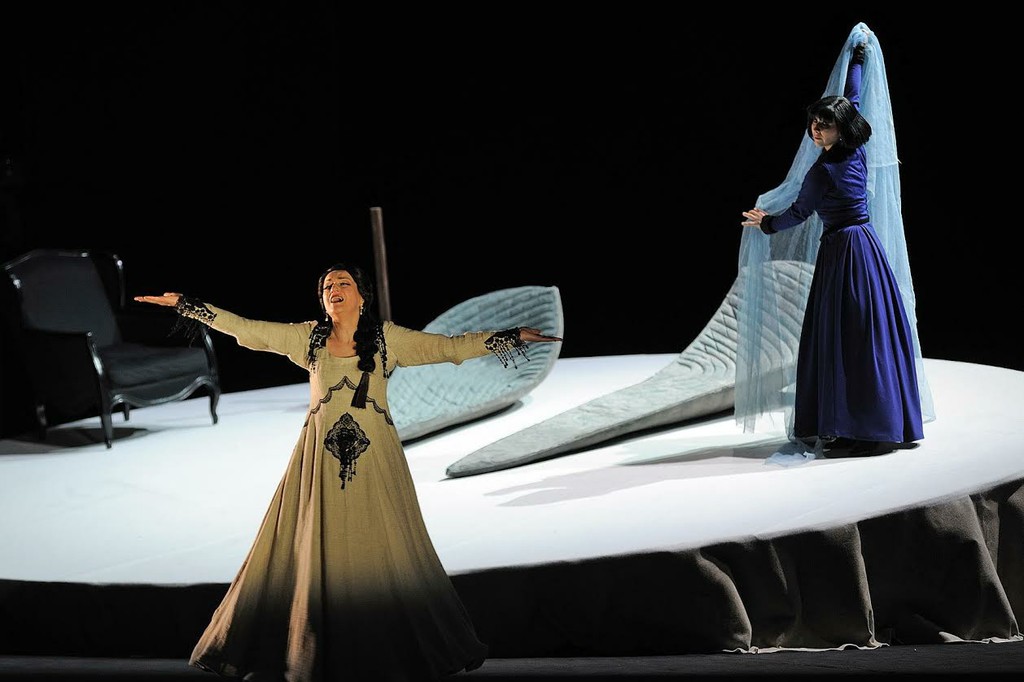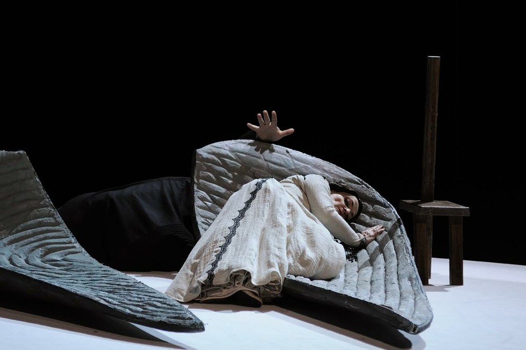 Её огромные крылья выносят на сцену и начинают плавно раскачивать статисты, а в конце, в «Иве», она уже не может ими взмахнуть. Маленькие белые птицы, время от времени взлетающие на чёрном фоне при появлении Дездемоны, невольно напоминают о чеховской «Чайке». Дездемона принимает вызов мужа мужественно и с достоинством, но, разумеется, проигрывает. В памяти остаются все её платья, придуманные Надеждой Гультяевой: от синего с белым пышным платком с левой стороны до финального светлого, украшенного чёрной вышивкой.