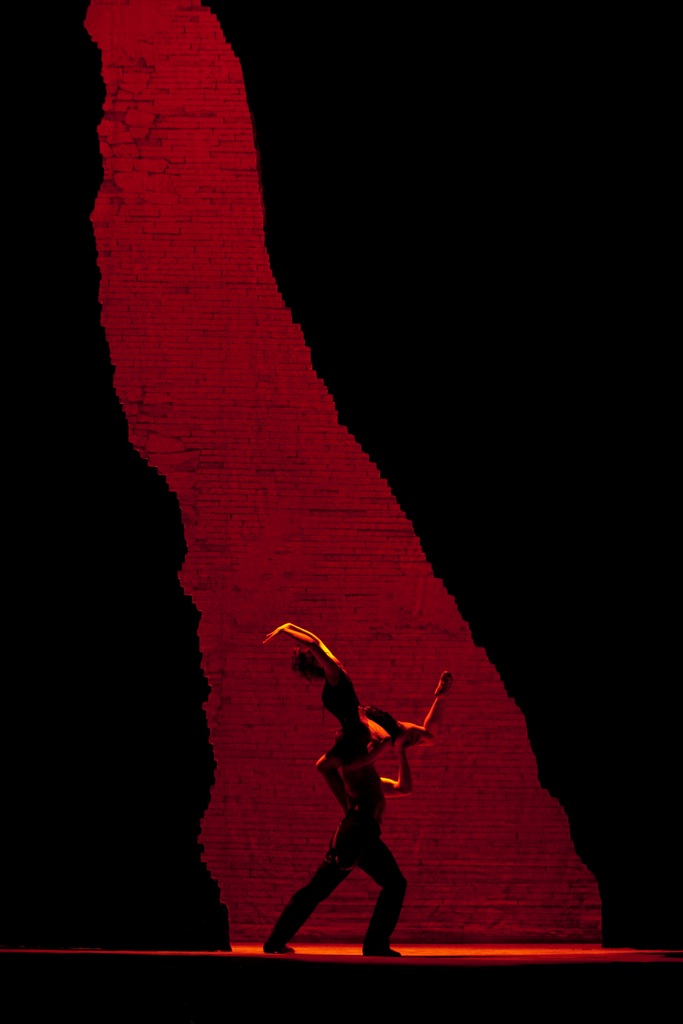 Кровавая молния занавеса, в «трещине» которой силуэт балетной пары исполняет ритуально-медитативную инсталляцию на тему «рокового влечения», — словно символ вспышки, ослепляющей человека, охваченного любовным томлением... Символ самой героини, образ которой становится детонатором внутренней закомплексованности и, видимо, социально-сексуальной неполноценности главного героя, которым становится Хозе в этой постановке.