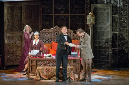 В целом, и спектакль, и его трансляция (с превосходным переводом титров на русский, с работой операторов и звукоинженеров) настроили на такой благодушный лад, что очевидный вопрос, витавший в воздухе, показался мне едва ли не кощунственным: а стоило ли вообще менять более чем изысканную и остроумную постановку Джонатана Миллера 1998 года на не менее умную и тонкую работу Ричарда Эйра? И тут в памяти как-то сам собой всплыл образ Дона Базилио, снабжённого в обеих постановках недвусмысленно-расширенной сексуальной ориентацией…