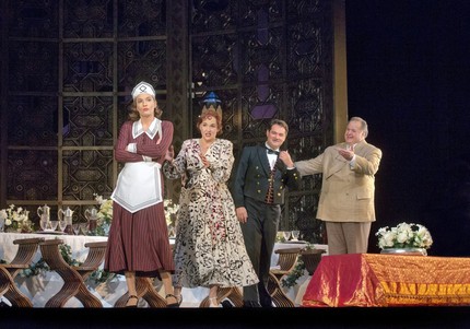 Именно это и происходит с Графом. Можно увидеть в великодушии Графини лёгкий налёт некоего лукавства, но детали её псевдоувлеченности Керубино вряд ли выходят за рамки нереализованного материнского инстинкта. Можно, конечно, сделать Розину стареющей нимфоманкой, но лишь в ущерб духу музыки, и режиссёр тонко чувствует это.