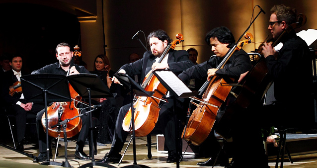 Точка в настоящих заметках, между тем, легко ставится сама собой, но после совершенно неожиданного музыкального биса. Весьма эффектным и запоминающимся завершением вечера стало исполнение квартетом виолончелей второй части «Бразильской бахианы» № 1 Эйтора Вилла-Лобоса (1930). Это сочинение как раз и написано для четырехголосного ансамбля виолончелей, но поскольку в афише были заявлены лишь трое солистов-виолончелистов, роль четвертого, естественно, взял на себя Дмитрий Юровский. Музыкальный характер «Прелюдии» (прозвучавшей второй части названной сюиты) основан на инструментальной стилизации традиционной вокальной музыки – фольклорного материала португальских сентиментальных песен о любви. По своему же интонационному строю эта пьеса оказалась весьма созвучна неторопливой, но очень настойчивой молитве. Это рафинированно тонкое исполнение, в котором из слияния партий четырех инструментальных голосов рождалась «маленькая симфония» большой эмоциональной чувственности, буквально заставило замереть зал. Так что еще одна «виолончельная песнь» – исключительно камерная и проникновенная – удалась в этот вечер и на сей раз.