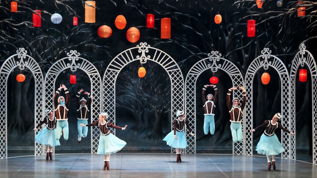 костюмы и дизайн словно достали из витрины лондонского Музея Виктории и Альберта: муфты, шляпки, чулочки, плиссированные юбочки в цветочек, твидовые пиджачки, разноцветные бумажные фонарики.