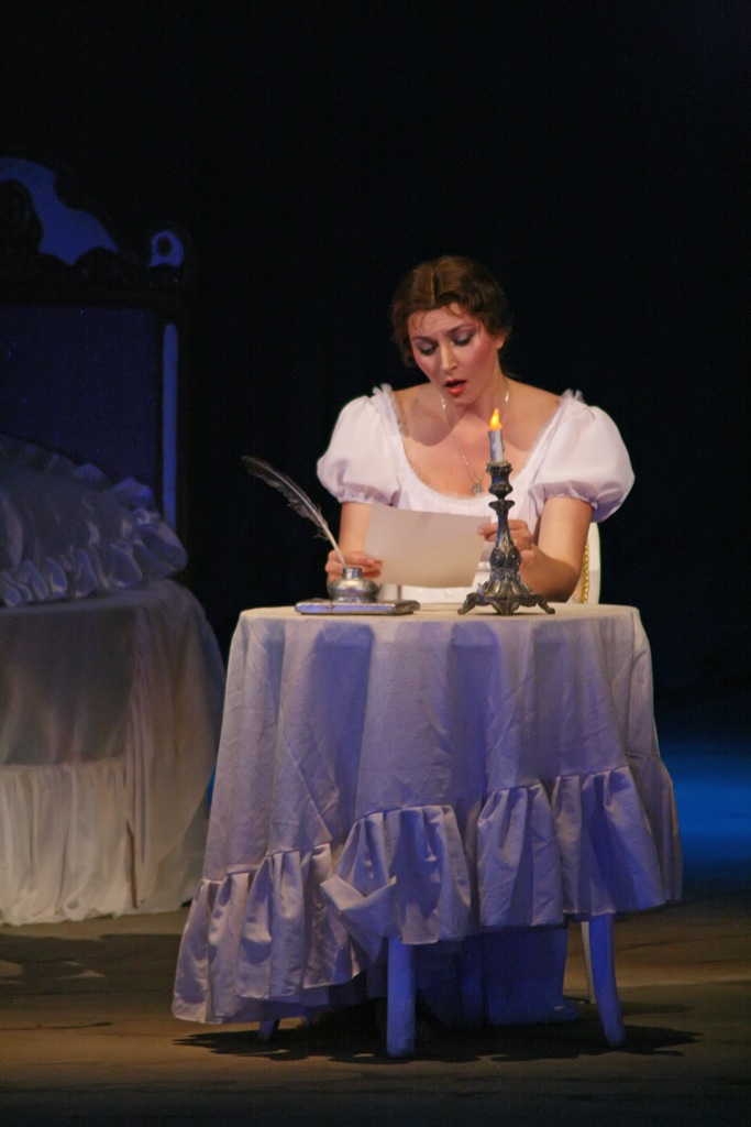 — Поскольку я выбрала сцену письма Татьяны, моей партнёршей в роли няни стала артистка белорусского театра Марина Аксенцова. Мы исполнили с ней сцену, предшествующую «письму». Я взяла такой большой кусок оперы специально, мне хотелось показать, как я умею работать с партнёром, а кроме того, сам момент «письма» нужно эмоционально подготовить, подвести к нему, создать необходимую атмосферу. Ну а дальше я уже пела на сцене одна.