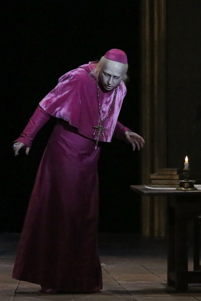 — Мой персонаж выписан у Верди в первом акте как некий голос из монастыря, который общается с доном Карлосом, а в последней картине – уже как сам Карл V. В нашей же постановке он сразу заявлен режиссером как неупокоенная душа Карла V, чтобы не путать зрителей. Она находится в чистилище и ищет контакт с миром живых, в частности со своим внуком доном Карлосом, который – единственный из всех персонажей – может его слышать в начале.