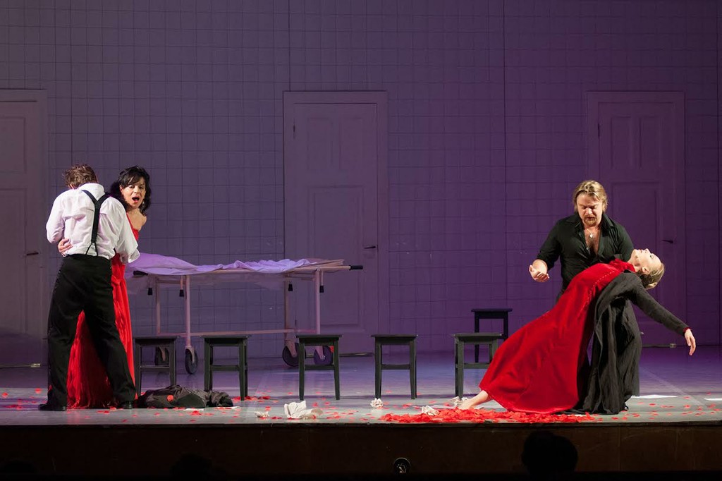 В спектакле обнаружились целых три Кармен — оперная (солистка Метрополитен-опера, знойная меццо Нэнси Фабиола Эррера), балетная (точеная фигурка и графически строгий рисунок партии Екатерины Шипулиной из Большого театра радовали глаз) и драматическая (Ольга Ломоносова). Карменситам были приданы три Хосе: балетный (великолепный Денис Родькин), оперный (тенор Виктор Антипенко вполне удовлетворительно справился с партией) и драматический (Михаил Трухин, герой детективных сериалов про ментов, выступил в необычном для него амплуа).
