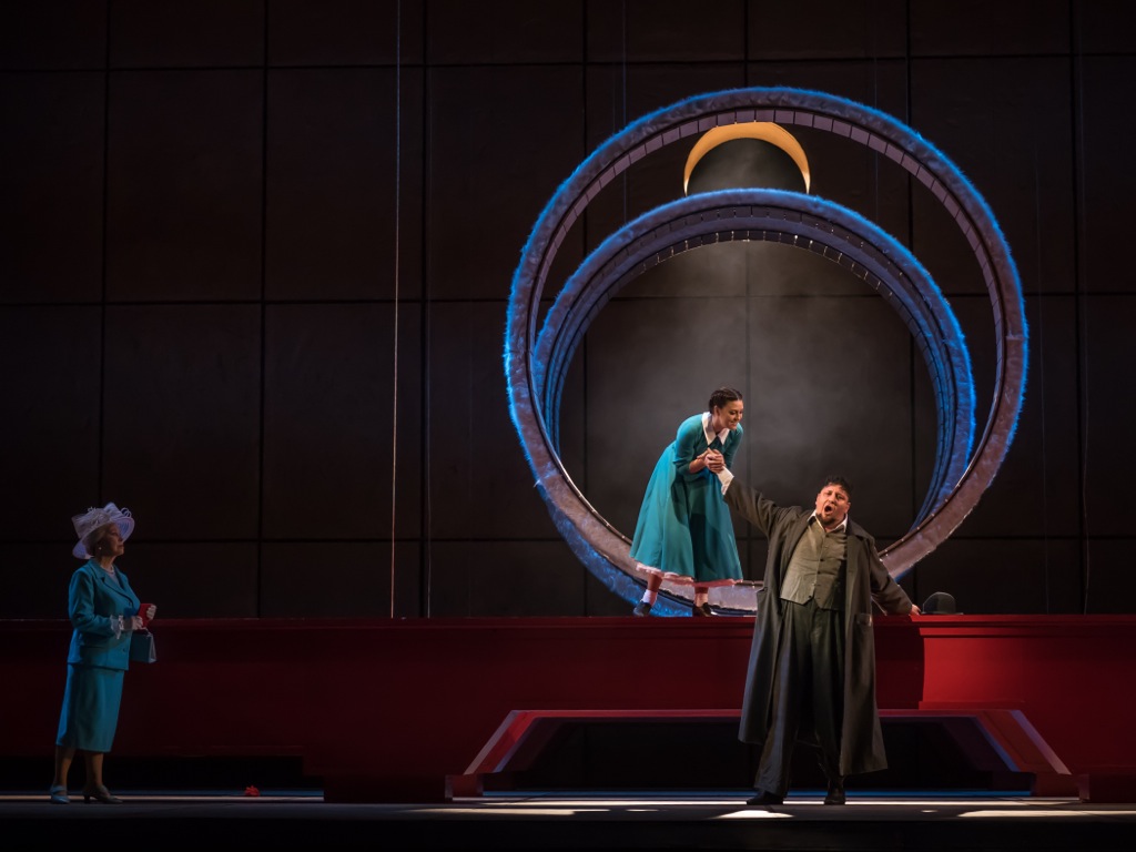 Риголетто здесь никакой не горбун и не придворный шут, он рядовой член банды Герцога. И проклинающий его граф Монтероне — всего лишь скромный врач скорой помощи. Зато служанка дочери Риголетто — вылитая английская королева Елизавета Вторая.