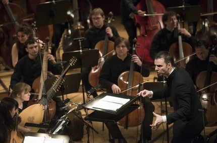 Курентзис начал, как он любит, в полной темноте с Концерта для клавесина, скрипки и виолы да гамба (1741). Тонкая лирическая песня виолы, казалось, готовила публику к камерному вечеру, но как только истаял последний нежный звук, зажегся свет, музыканты вышли в полном составе, чтобы рассказать о дансантной природе барочной музыки: не надо бояться деревянных звуков, по дереву удобно отбивать ритм, а унылые стулья не нужны, так как с них не потанцуешь.