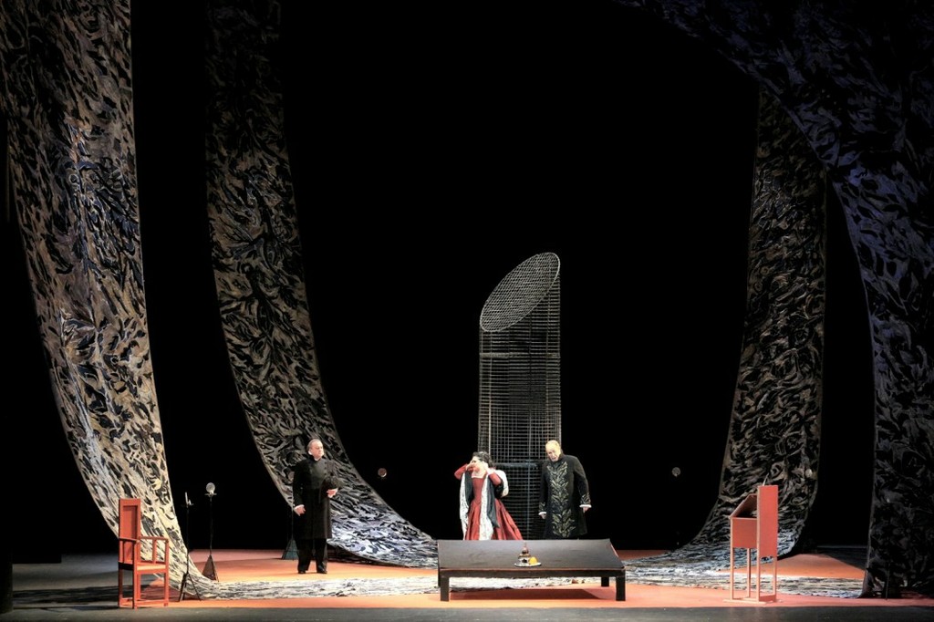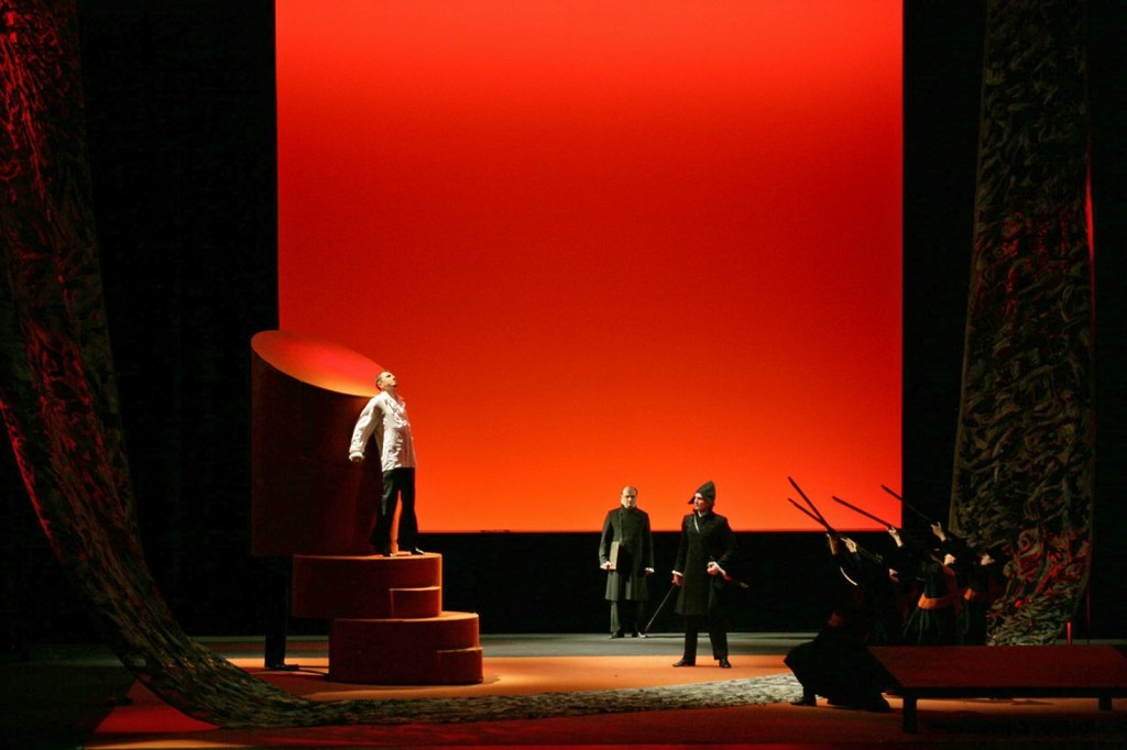 С первых вступительных «аккордов Скарпиа» внимание зрителя приковывает к себе огромный экран, расположенный в середине сцены. В драматических моментах оперы он меняет свой размер и цвет, но как-то всё время непонятно для чего. Сложилось впечатление, что функция этого огромного монитора состоит в том, чтобы отвлечь внимание публики на особо сложных для исполнения моментах оперы, вдруг кто-то «схватит» фальшивую ноту.…