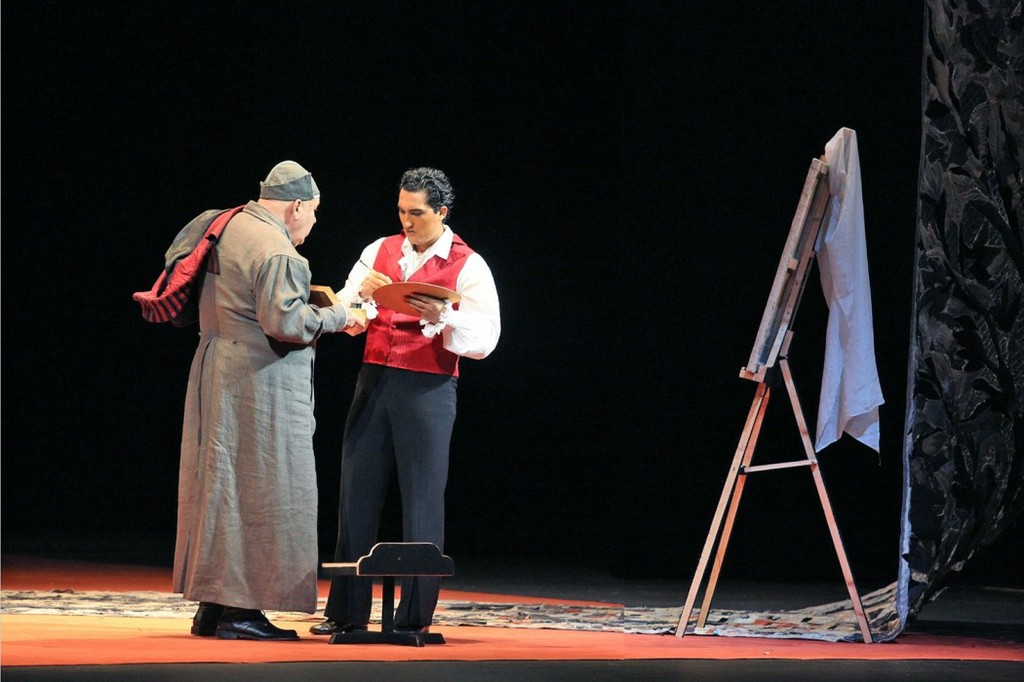 Видимо, режиссёр хотел придать сходство спектаклю с другой оперой Пуччини — «Мадам Баттерфляй». Но это два разных сюжета, и подобное харакири больше подходит по стилю японской истории, нежели итальянской драме.