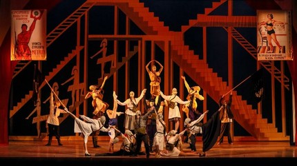 Например, лирически-романтические дуэты Маши Фунтиковой (Наталья де Фробервиль-Домрачева) и Стопки Курочкина (Артём Мишаков) в классическом стиле навевают аналогии с романтическими балетами, с «Барышней и хулиганом» и даже едва ли не со «Щелкунчиком», однако классическая танцевальная лексика контрастирует с декорациями и костюмами, стилизованным в духе 30-х годов.