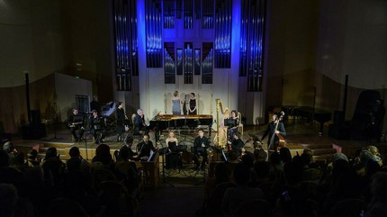 Московский Ансамбль современной музыки также выступил в формате ночного концерта и представил виртуозную программу «Трансцендентные этюды», состоящую из камерных сочинений композиторов XX–XXI века: Брайана Фернехоу, Яниса Кириадеса, Беата Фуррера, Яниса Ксенакиса и пермского композитора Александра Хубеева.