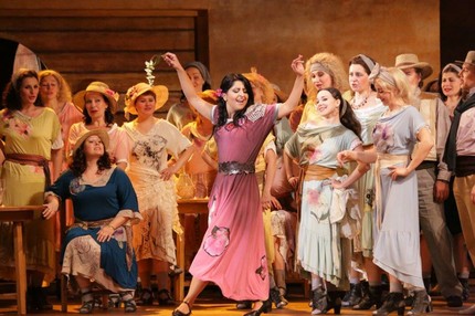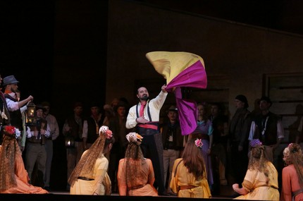 Или, к примеру, «народ» является разнимать драку между Хозе и Цунигой – вряд ли либреттист предполагал, что шайка контрабандистов – это толпа в сто человек, да и откуда они ночью так оперативно собрались, все вместе подглядывали в замочную скважину? Но тогда, учитывая масштаб численности бандитов и контрабандистов, получается, что вся экономика в крае – теневая и криминальная (а раз такая уж бандитская выдалась страна, то так ли уж плохо, что власти хоть так вяло, но пытаются поддержать порядок?).