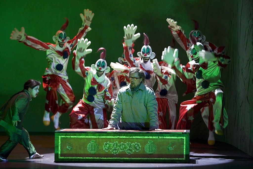 Бесконечно удачной можно назвать работу с хором (хормейстер Дэвид Кэвельюс): множество мизансценических находок и отличная слаженность коллектива создали необходимую атмосферу гротеска, циничной иронии, приводящей к фатальному исходу.