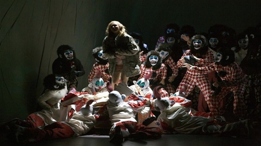 Сцена ночной грозы, когда Джильда так самоотверженно идёт на верную смерть — одна из самых напряжённых в опере. У Коски завывание ветра изображает именно группа клоунов, присевших в глубине сцены. Поверьте, смех и ужас в одном лице работают безотказно.
