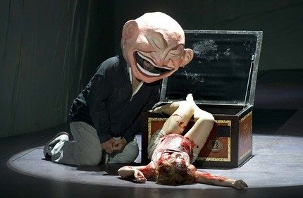 в разных его частях находятся Джильда и Герцог. Правда, вот незадача: в той из них, на которой в финале надрывно танцует Риголетто, припоминая беспечную арию своего врага, оказывается его собственная умирающая дочь, а вот в другой — тот самый беспечный Герцог, всё так же беспечно поющий арию «La donna é mobile». Может быть, щедрое количество крови на Джильде уж слишком в духе Тарантино, однако ощущение жути и бешено бегающих мурашек — достигается.