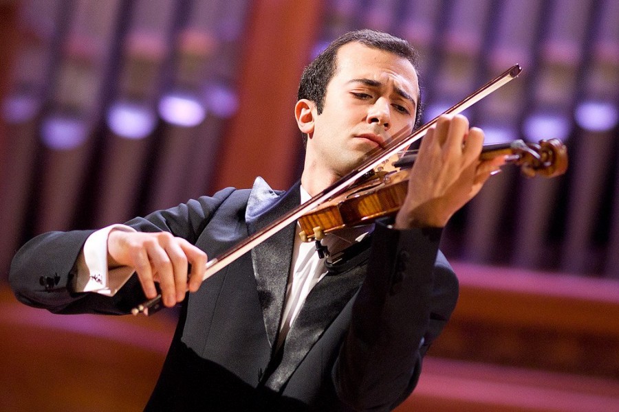 Обладателя первой премии, Дмитрия Маслеева, организаторы концерта оставили, разумеется, напоследок (что ж, пианисту не привыкать, он завершал все туры). И сразу после Генюшаса на сцену вышел Гайк Казазян, занявший третье место в номинации «скрипка».