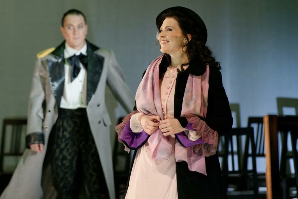 В первом акте Виктория Мишкунаите пела ровно, но не слишком разнообразно в плане оттенков и интонаций. Перед тем как убежать вместе с кавалером де Гриё, Манон нарочно оставляет свой чемоданчик, словно сбрасывает груз добродетели. Когда его чуть позже раскрывает де Морфонтен, оттуда стремительно взлетает воздушный шарик, намекая, что очень уж лёгким был этот груз.