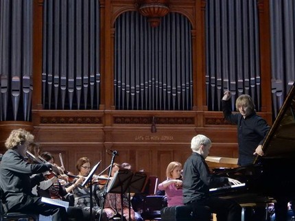 За рояль сел 14-летний Александр Малафеев, лауреат нескольких международных конкурсов, в том числе юношеского конкурса имени Чайковского. Это было феерическое зрелище.