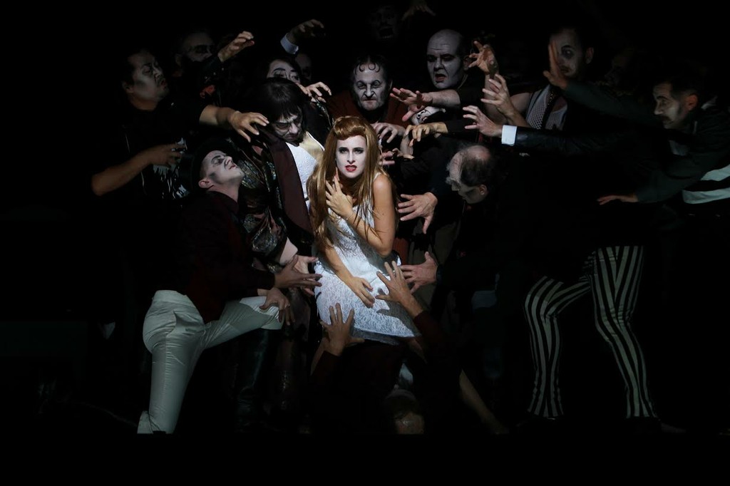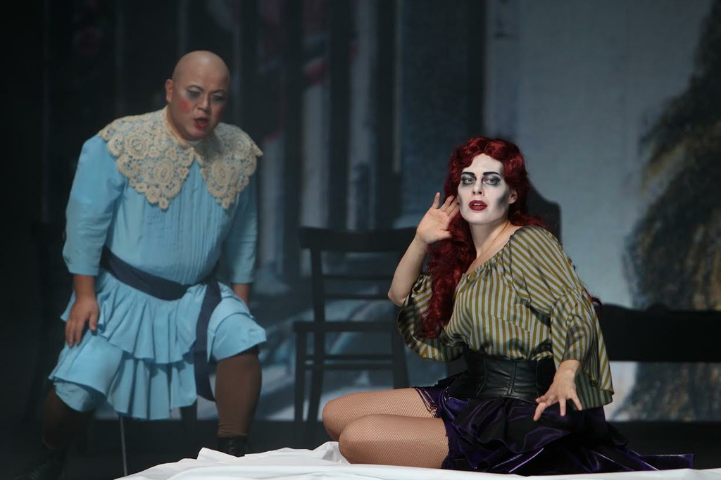 В спектакле переплетаются традиции ярмарочных балаганных представлений и парижского театра Гран-Гиньоль,