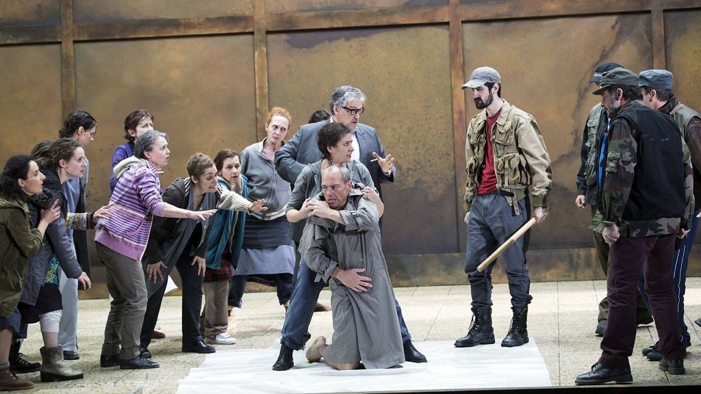 После объявления в прошлом году программы Троицкого фестиваля, в рамках которого спектакль Моше Лейзера и Патриса Корье был впервые представлен, у многих закралось подозрение, что привязанность постановочной группы к политическому китчу (стоит вспомнить их скандальные работы над «Цезарем» Генделя и «Нормой» Беллини, где художественно препарировался ближневосточный кризис и тема итальянского подполья периода Второй мировой войны соответственно) непременно вылезет и здесь.