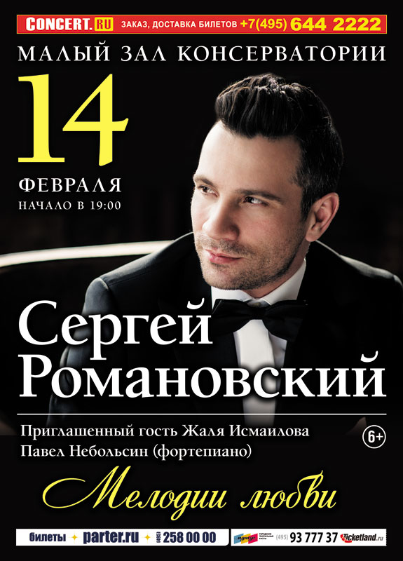 14 февраля в Малом зале консерватории даст свой первый сольный концерт тенор Сергей Романовский, партия фортепиано – Павел Небольсин. Приглашенная солистка – Жаля Исмаилова.