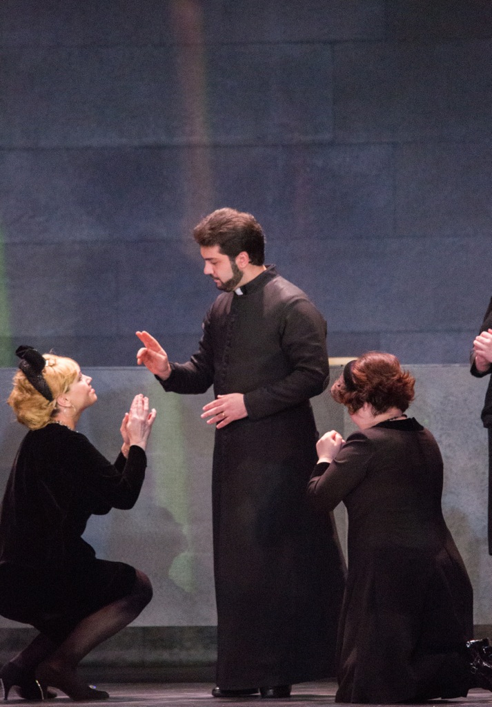Финал второго акта – аскетичный, но весьма эффектно стилизованный интерьер церкви, в которой разворачивается сначала сцена Де Грие и его отца, тщетно пытающегося вернуть в свет сына, а затем – страстный дуэт Де Грие и Манон. В его финале новоиспеченный священник, покидая свою паству, всё же возвращается в свет: его чувства к Манон были подавлены, но не умерли.