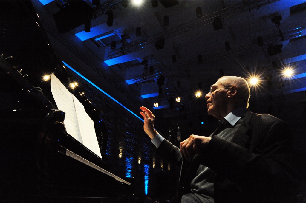 Когда анонсировалась несостоявшаяся зальцбургская премьера, название оперы фигурировало во французском варианте «Fin de partie», однако на сей раз небольшой фрагмент из нее Хилари Саммерс исполнила на английском. «Fin de partie» превратилось в «Endgame», и это заставило теряться в догадках, каким же будет язык оперы. В оригинале пьеса была написана на французском, а затем самим автором переведена на английский. До нынешнего исполнения пролога вопроса не возникало: казалось, что вербальная основа оперы Дьёрдя Куртага – французская. Однако в любом случае услышать этот небольшой эпизод на английском было чрезвычайно интересно! Но еще более интересно было присутствовать на стихийном «мастер-классе» композитора, который он дал певице: после исполнения фрагмента оперы маэстро, поднявшись на сцену, сам сел за рояль, и мы стали свидетелями десятиминутного живого творческого процесса, в котором рождалась – шлифовалась и оттачивалась – вокальная интерпретация. И это был поистине царский подарок от композитора – музыкальный подарок из первых рук!