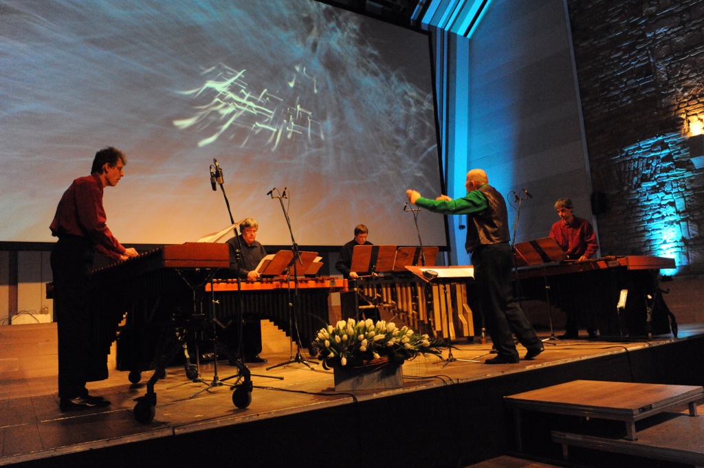 Первая – «Цветок для Мияко». Вторая – «Знаки». Третья – «Памяти Т. Кикучи» (T. Kikuchi). Четвертая – «Посвящение Баху». Партию скрипки уверенно провела японка Хироми Кикучи (Hiromi Kikuchi), партию альта – японец Кен Хакии (Ken Hakii), главный альтист Королевского оркестра Консертгебау, а свою опытную руку на пульсе электронной составляющей звучания по-прежнему держал Дьёрдь Куртаг-мл. Под управлением Барнабаша Дукая (Dukay Barnabás) ударная группа «Амадинда» (Amadinda Percussion Group) ансамблем четырех маримб представила опус дирижера «Floating mist on the face of the depths» («Плавающий туман на поверхности глубин»). Дирижер и музыканты группы – Золтан Рац (Rácz Zoltán), Золтан Ваци (Váczi Zoltán), Аурель Холло (Holló Aurél) и Карой Бойтош (Bojtos Károly) – легко погрузили слушателей в состояние музыкальной медитации: вечер завершился в атмосфере благостного спокойствия и полного умиротворения.