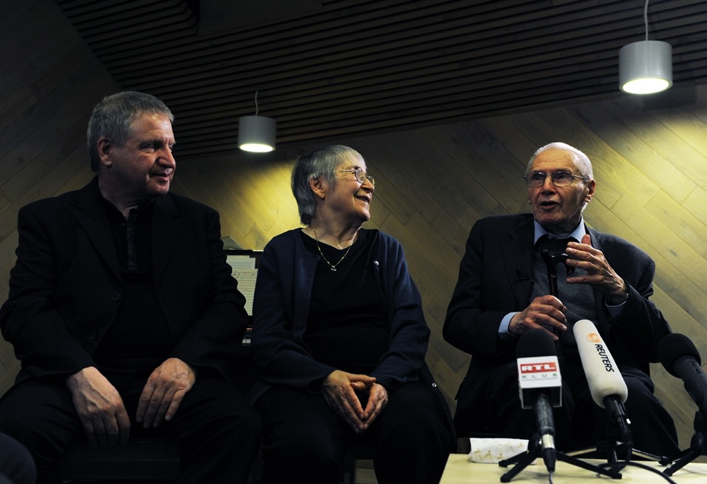 Весьма символично, что его дед когда-то учился вместе с Дьёрдем Куртагом в Академии Листа, так что преемственность музыкальных династических поколений на этой встрече прослеживалась и со стороны «вопрошавших», и со стороны «ответствовавших». Дьёрдь Куртаг с прессой всегда общается неохотно, но на сей раз он был в хорошем настроении, много шутил, не вдаваясь в излишне сухие академические акценты, чему, по-видимому, как раз и способствовала сама семейная домашняя обстановка: встреча происходила в небольшом помещении BMC, можно сказать, буквально с глазу на глаз.