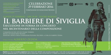 «Севильский цирюльник», самая известная опера Россини, была написана 200 лет назад, и в понедельник 29 февраля, в день рождения композитора, Пезаро посвятил концертное исполнение этого шедевра памяти своего светлейшего уроженца. Начало торжественного мероприятия, инициированного Консерваторией Россини в Пезаро, было назначено на восемь с половиной часов вечера в Teatro Rossini. В тот же день здешняя Консерватория начала отсчет своего 134-го учебного года. В организации праздничного мероприятия также приняли участие Accademia Rossiniana (аффилированный институт Россиниевского оперного фестиваля), Городской совет Пезаро, Ассоциация театральных деятелей области Марке (Associazione Marchigiana Attività Teatrali) и Фонд Россини в Пезаро. В этот торжественный вечер Хором и Оркестром Консерватории Россини управлял легендарный маэстро Альберто Дзедда (Alberto Zedda). Функции хормейстера проекта взял на себя Альдо Чикконофри (Aldo Cicconofri).
